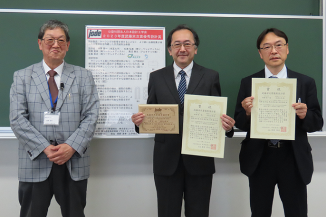 (左から)日本設計工学会長、綿貫 啓一教授、岡野 英幸氏